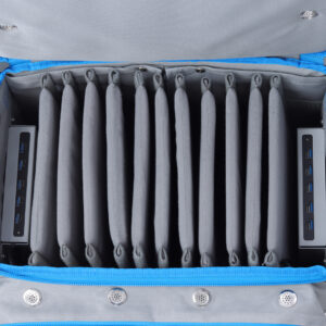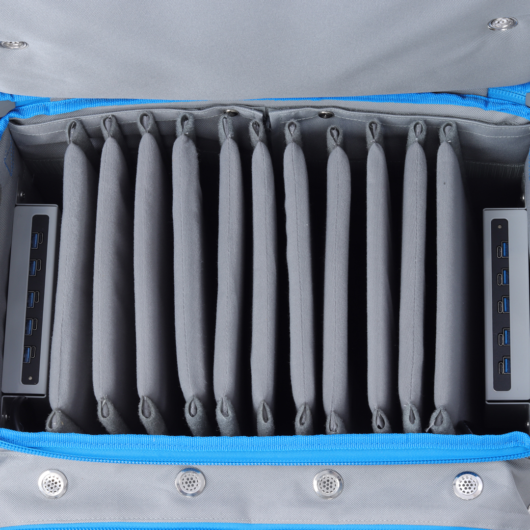The GO2+ Case for Tablets is a compact, portable charging solution designed to keep your devices powered, protected, and ready to go—wherever they’re needed. Built for flexibility and everyday use, it charges up to 10 USB devices including tablets, Chromebooks, mobile phones, POS systems, PDAs, scanners, and e-readers, all stored neatly in vertical compartments for easy access and organisation.