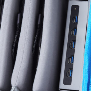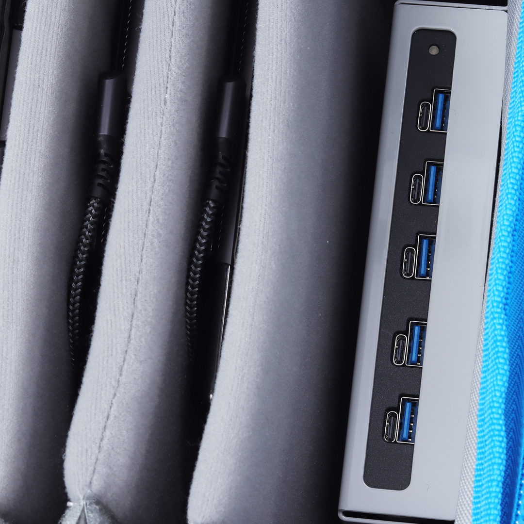 Built-in power system supports safe and efficient charging, with internal cable management designed to keep devices secure, protected and ready for use at all times