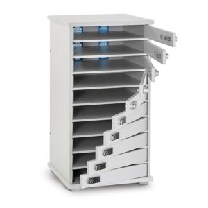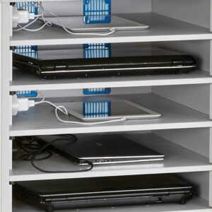 The Lyte 10 Multi Door charges 10 Devices up to 15.6″ screen size – Chromebooks, laptops and tablets (including protective cases), POS devices, tooling and other chargeable equipment.