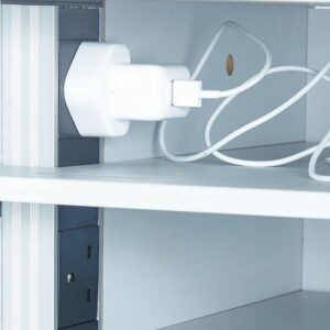 Locker has 2 x 5-way power strips installed, 1 per compartment, designed and manufactured in-house