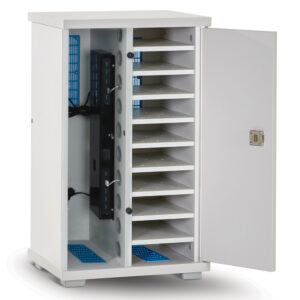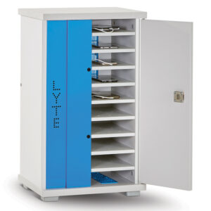 The Lyte 10 Single Door Mini charges 10 devices up to 11″ screen size – tablets (including protective cases), mobile phones, POS devices, tooling and other chargeable equipment.