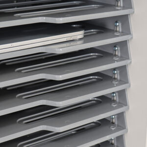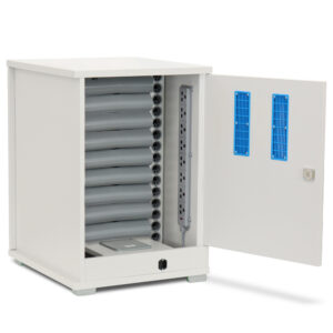 The Lyte 16 Single Door Plastic Shelf charges 16 devices up to 15.6″ screen size – Chromebooks, laptops and tablets (including protective cases), POS devices and other chargeable equipment.