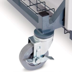 Thick steel binding plate connects heavy duty wheels to the cart ensuring wheels never buckle or loosen