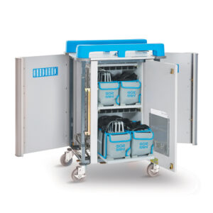 Charges 20 tablets up to 11″ screen size – including protective cases