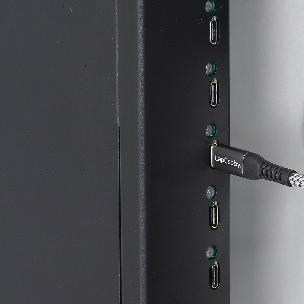 Simultaneously charge & synchronise with two 16-port USB-C managed hubs mounted on each side of the trolley, delivering 10.5W charging and high-speed 480 Mbps syncing, saving time when deploying apps, media, and content.