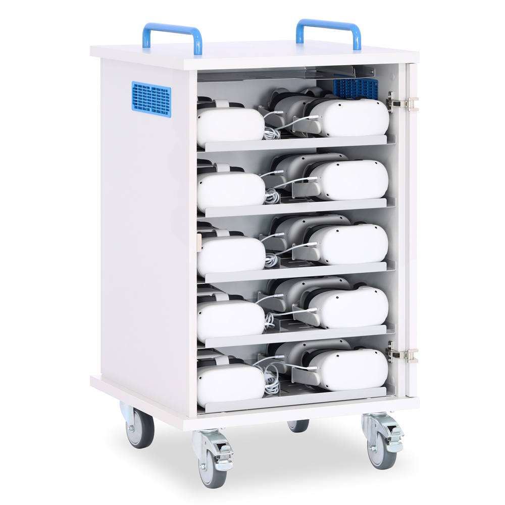 Charges 20 flexible VR headsets or 10 rigid VR Headsets