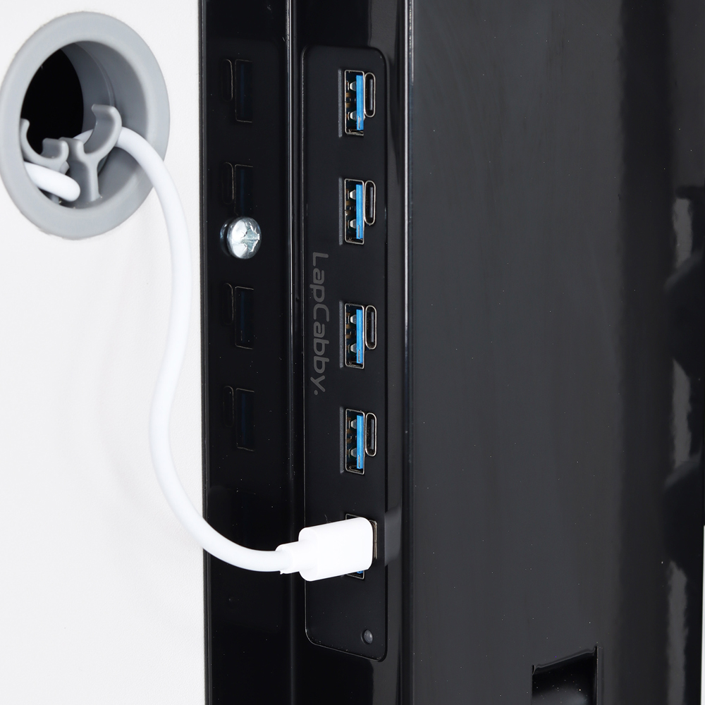 By providing the equivalent of 20 45W USB-C and 20 10.5 USB-A charging ports, the charging hubs offer a space-saving and power-efficient solution. They replace the need for multiple extension cables and power sockets, allowing to streamline the setup with just one cable connected directly to the wall