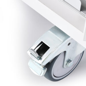 Fitted with large all directional swivel, non-marking hospital grade rubber wheels (2 braked)